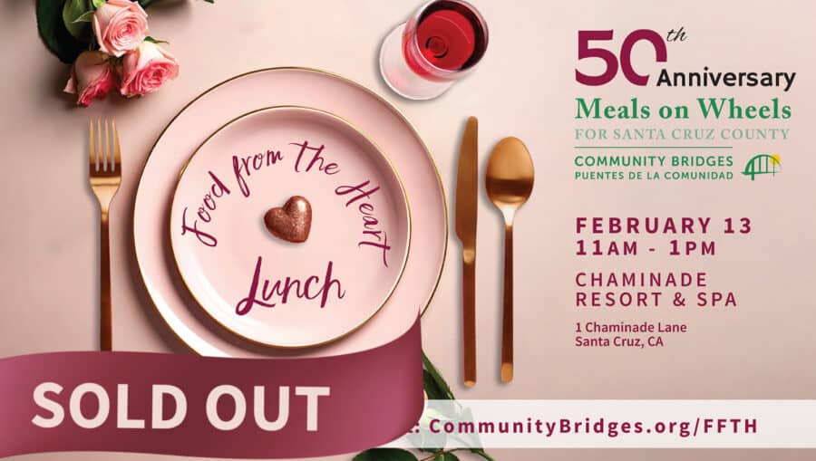 A beloved community gathering, the Food from the Heart Luncheon on Friday, February 13, 2026 from 11am to 1pm at the Chaminade Resort & Spa celebrates Meals on Wheels for Santa Cruz County, a program of Community Bridges, now proudly marking 50 years of service.
